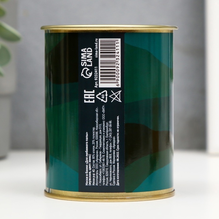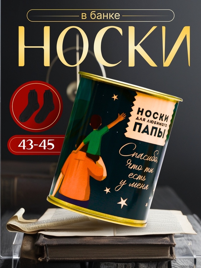 Подарочные носки в банке «Для любимого папы», (внутри носки мужские, цвет чёрный)