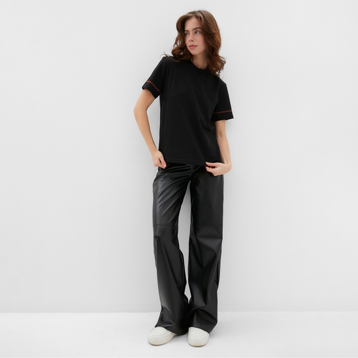 Футболка женская с красным кантом Basic line цвет черный, р-р 50