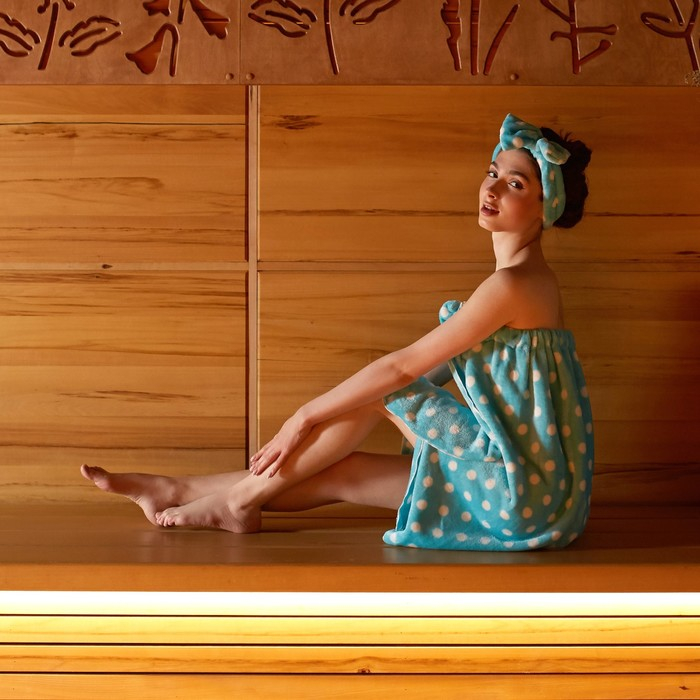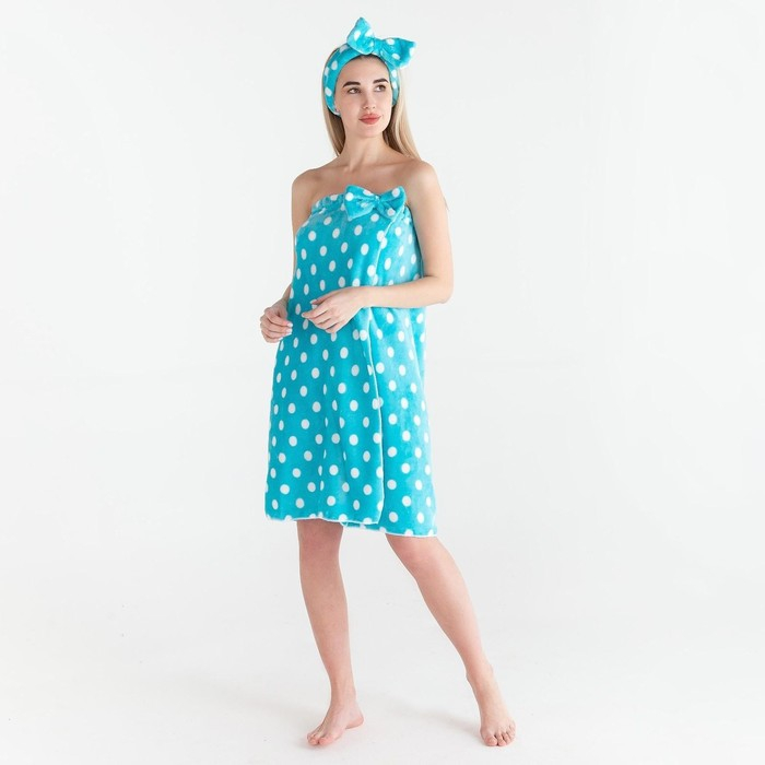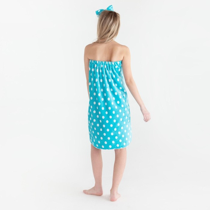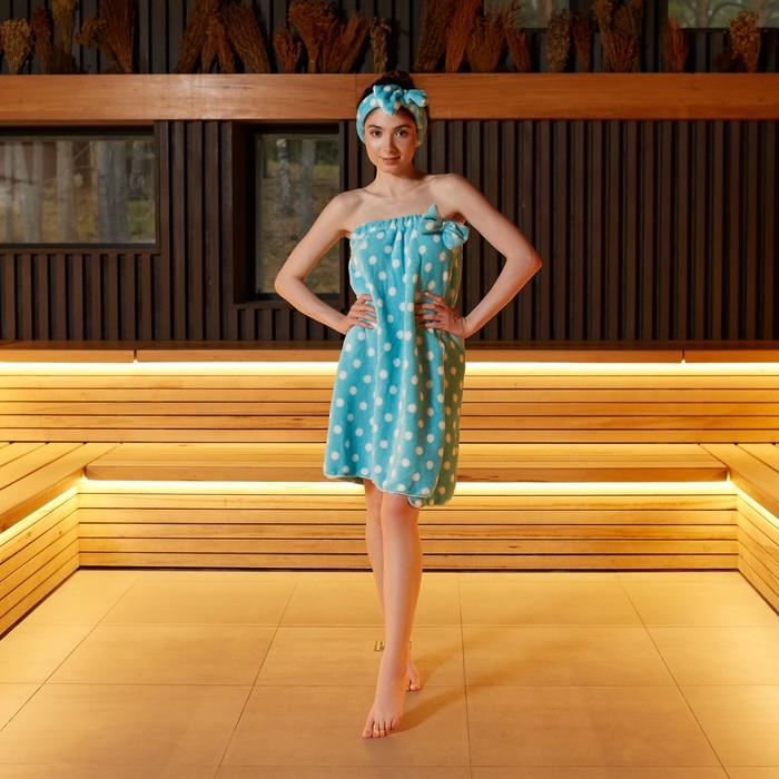 Набор для бани и ванной Этель "Горох"полотенце-парео 75*120 см+повязка, цв.голубой