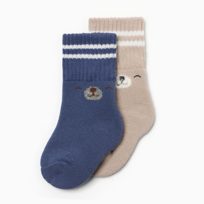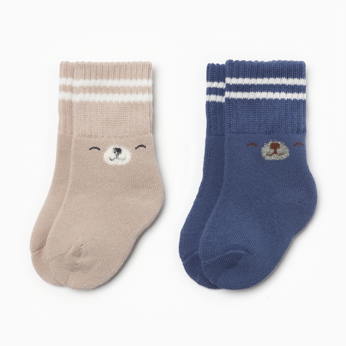 Набор махровых носков Крошка Я Basic Line, 2 пары, 0-6 мес., бежевый/синий