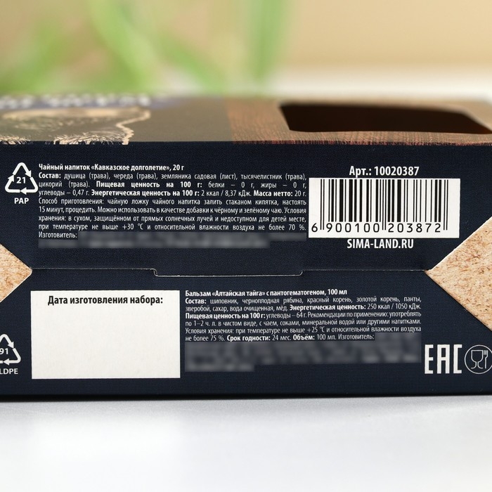 Набор «Сильному духом»: чай травяной 20 г., бальзам 100 мл.