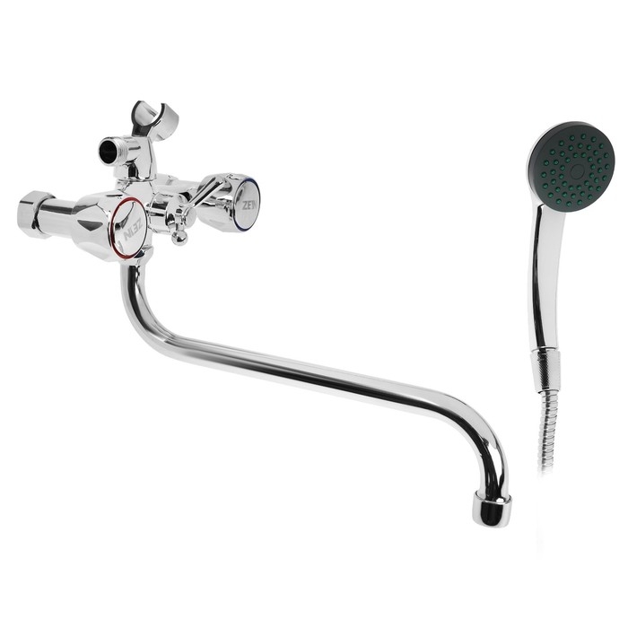 Смеситель для ванны ZEIN Z4327, кран-букса 1/2", излив 27 см, с душевым набор, хром