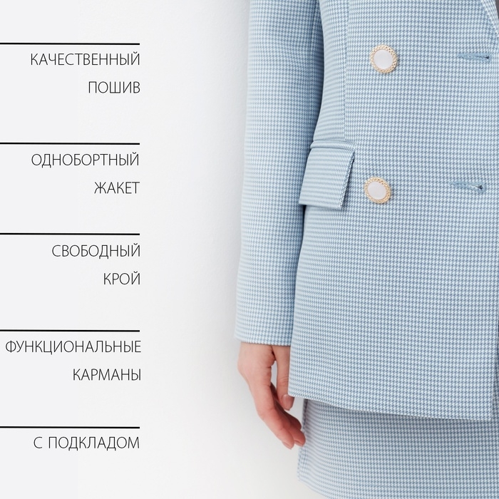 Пиджак женский двубортный MIST р. 48, голубой/белый