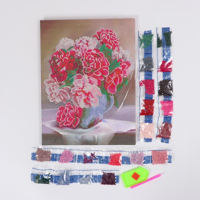Алмазная мозаика с частичным заполнением на подрамнике «Пионы», 30 x 40 см