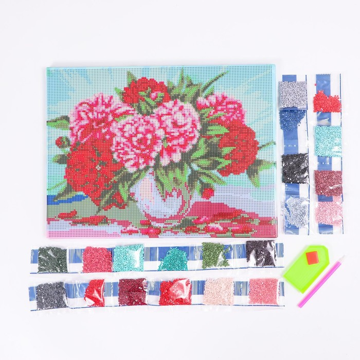 Алмазная мозаика с полным заполнением на подрамнике «Пионы», 30 x 40 см
