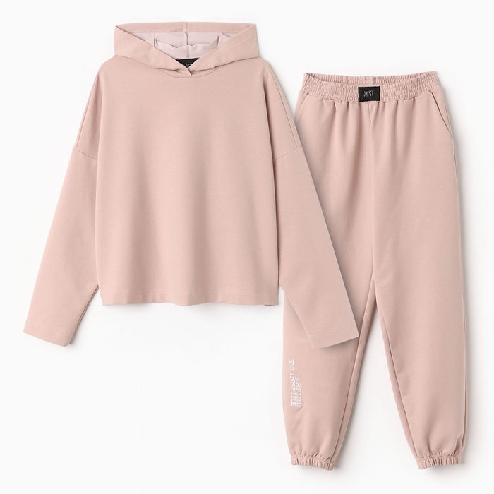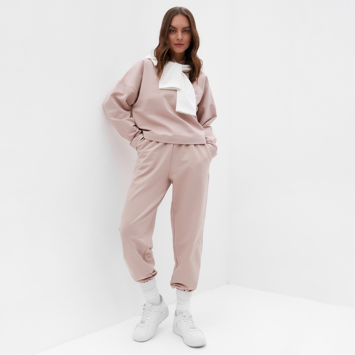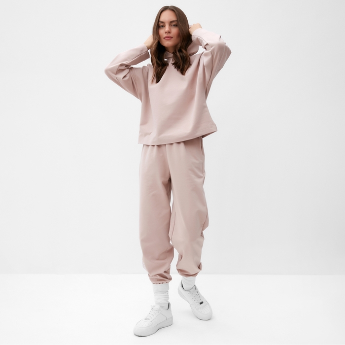 Костюм женский (толстовка и брюки) MIST Inspire с вышивкой, р. 44-46, бежевый