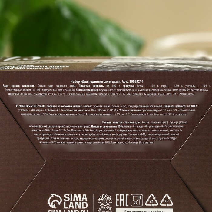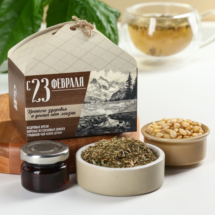 Подарочный набор "Для поднятия силы духа" кедровый орех 30 г, варенье 30 г, чай 20 г