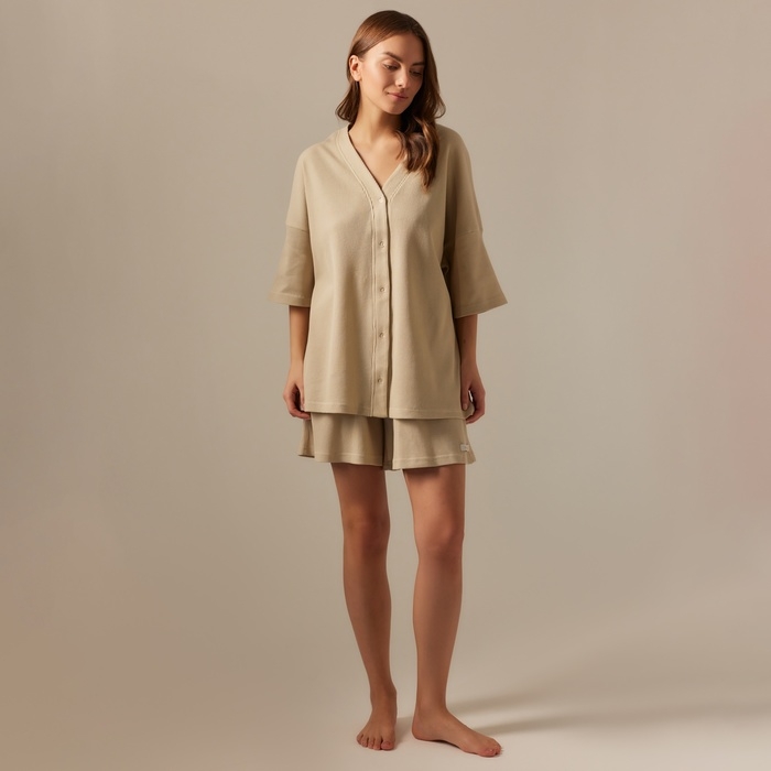 Костюм домашний женский (рубашка и шорты) SL HOME р. S, бежевый