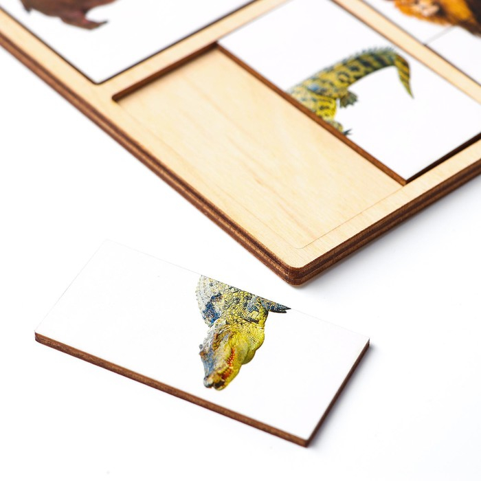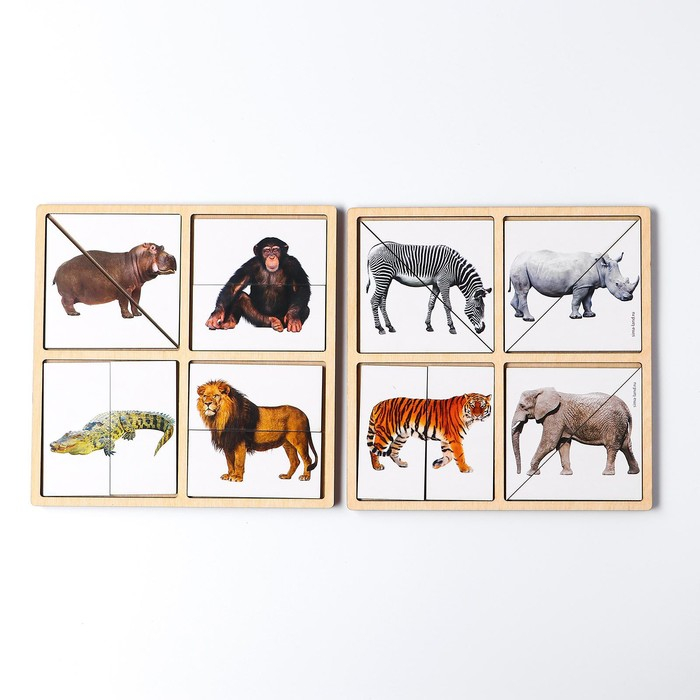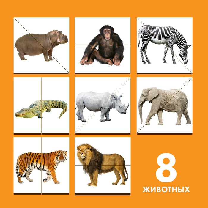Для начала дайте ребёнку взглянуть на собранные картинки. Попросите назвать кто/что изображено на каждой картинке. Затем можно вынуть по одной детали от картинки и перемешать. Попросите малыша соединить половинки. Далее достаньте уже все детали и перемешайте.