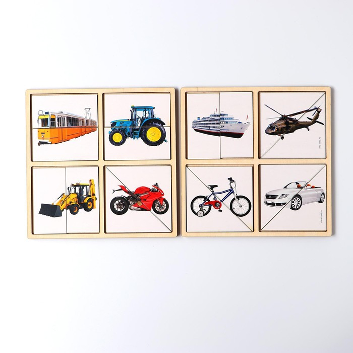 Для начала дайте ребёнку взглянуть на собранные картинки. Попросите назвать кто/что изображено на каждой картинке. Затем можно вынуть по одной детали от картинки и перемешать. Попросите малыша соединить половинки. Далее достаньте уже все детали и перемешайте.