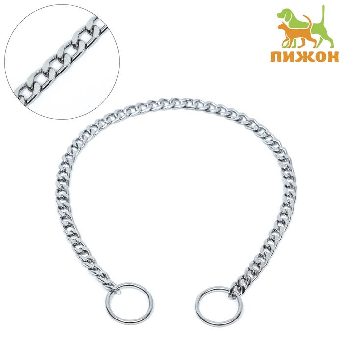 Ошейник - удавка металлический однорядный, 45 см, толщина проволоки 2 мм, плоское звено