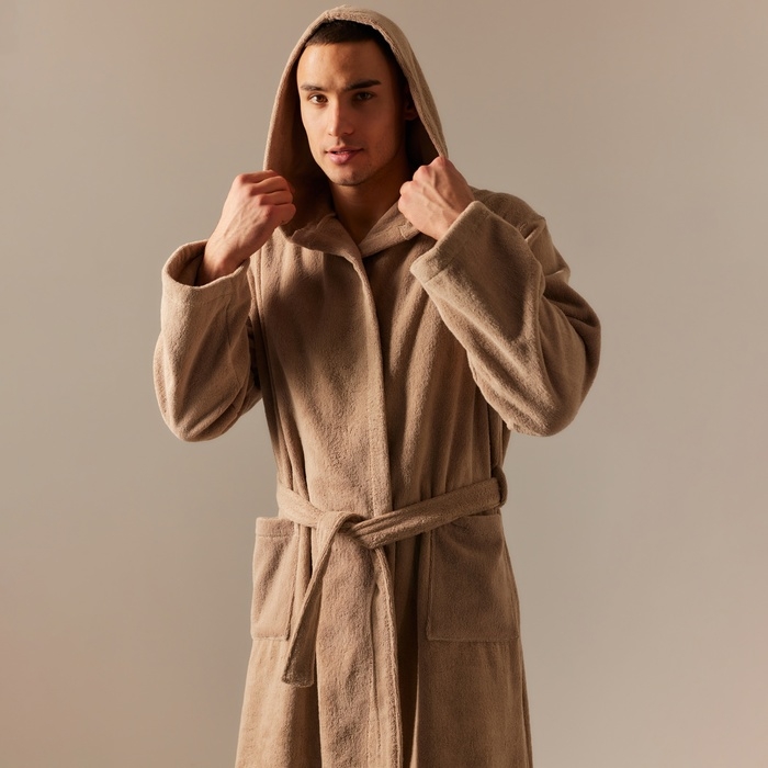 Халат махровый с капюшоном мужской SL HOME: Basic "Саббиа", размер S, 100% хлопок, 420 г/м2