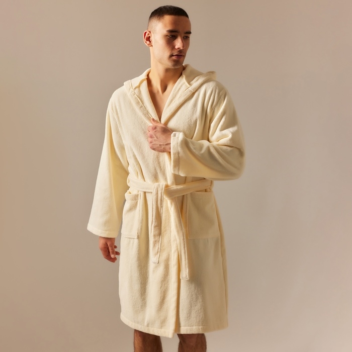 Халат махровый с капюшоном мужской SL HOME: Basic "Айвори", размер M, 100% хлопок, 420 г/м2