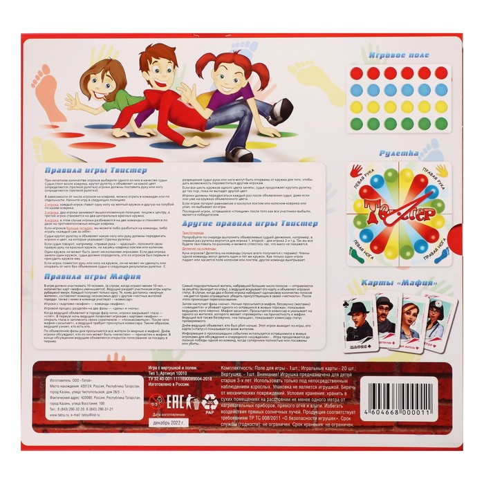Игра 2 в 1 «Твистер» + карты «Мафия»