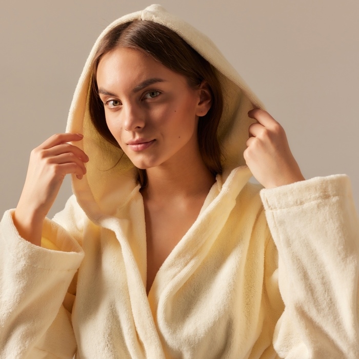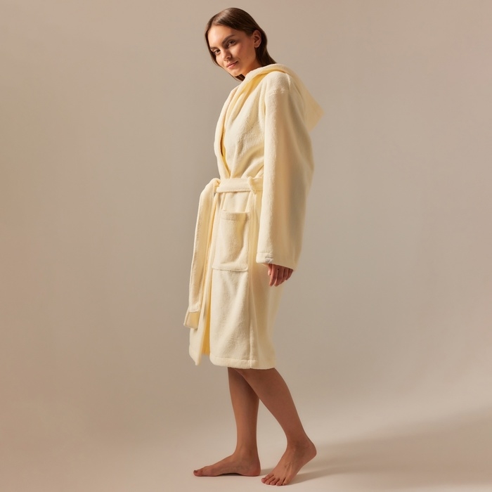 Халат махровый с капюшоном женский SL HOME: Basic "Айвори", р-р XL, 100% хл, 420 г/м2