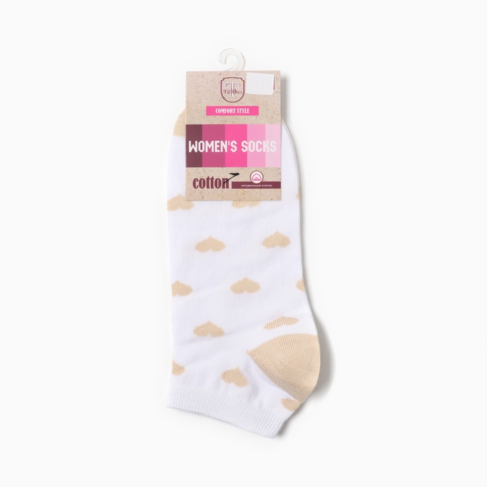 Носки женские Сердца, цвет белый/бежевый, р-р 23