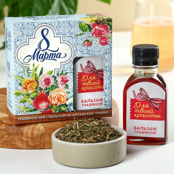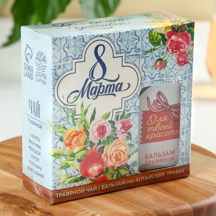 Подарочный набор «8 марта»: чай травяной 20 г., бальзам природный 100 мл.