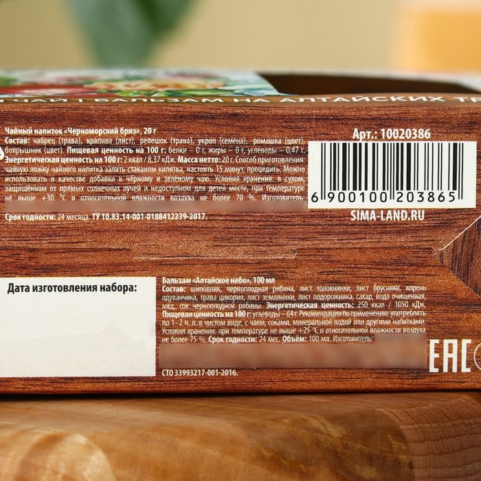 Состав: шиповник, черноплодная рябина, лист толокнянки, лист брусники, корень одуванчика, трава цикория, лист земляники, лист подорожника, сахар, вода очищенная, мёд, сок черноплодной рябины.