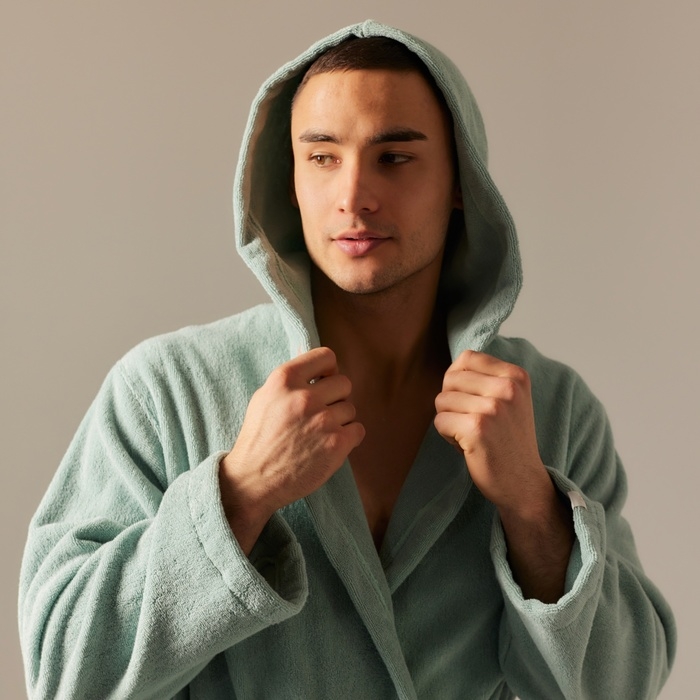 Халат махровый с капюшоном мужской SL HOME: Basic "Аззура", размер M, 100% хлопок, 420 г/м2