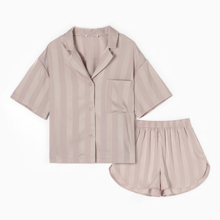 Пижама женская (рубашка и шорты) KAFTAN SILK "Полоска" р.44-46, бежевый