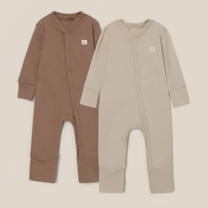 Набор комбинезонов 2 шт SL HOME рост 74-80 см, цв. бежевый/кофейный