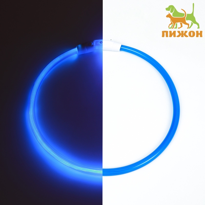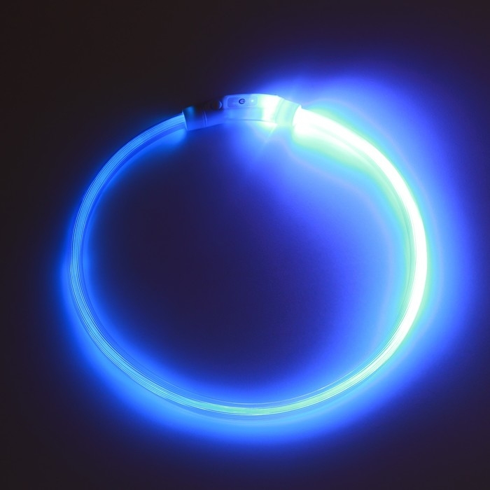 Ошейник - кольцо с подсветкой, зарядка от USB, до 70 см, 3 режима свечения, голубой