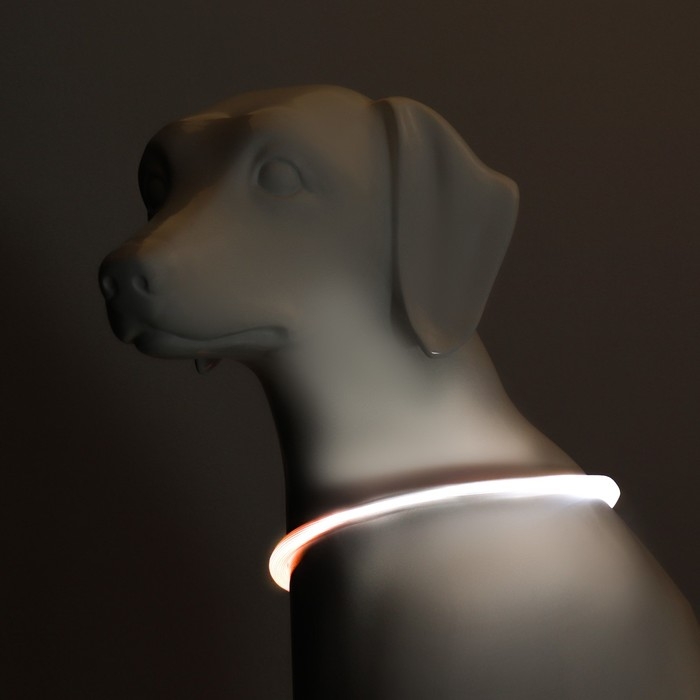 Ошейник с подсветкой Двойная полоса размер L, ОШ 45-52 х 2,5 см, 3 режима свечения белый