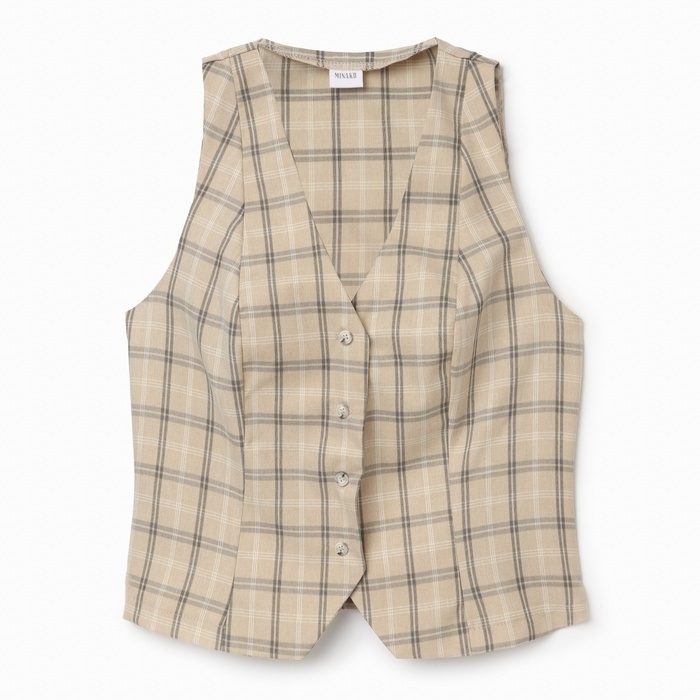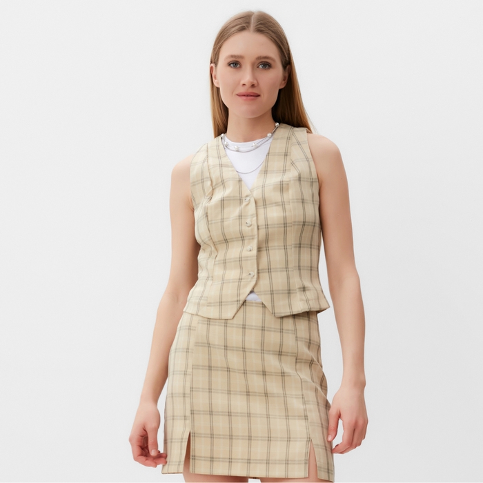 Жилет женский MINAKU: Casual Collection цвет клетка бежевая, р-р 46
