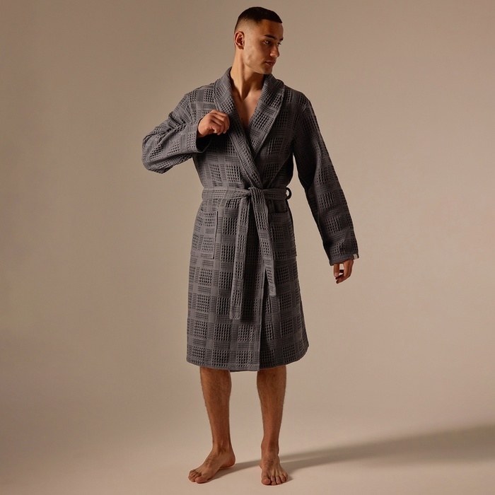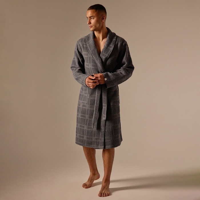 Халат вафельный мужской SL HOME: Chess "Гри Сандре", размер S, 100% хлопок, 340 г/м2