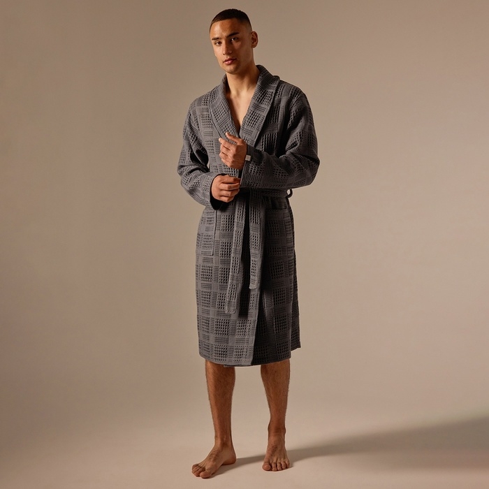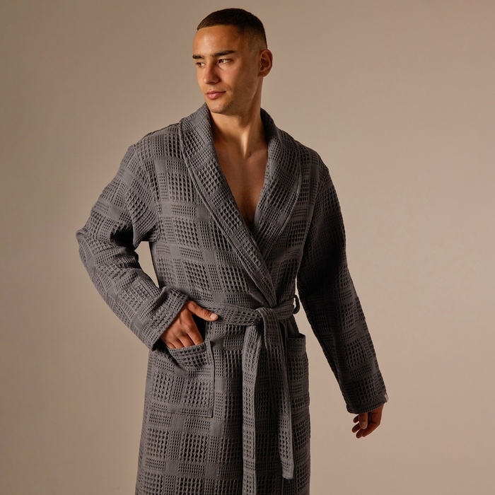 Халат вафельный мужской SL HOME: Chess "Гри Сандре", размер M, 100% хлопок, 340 г/м2