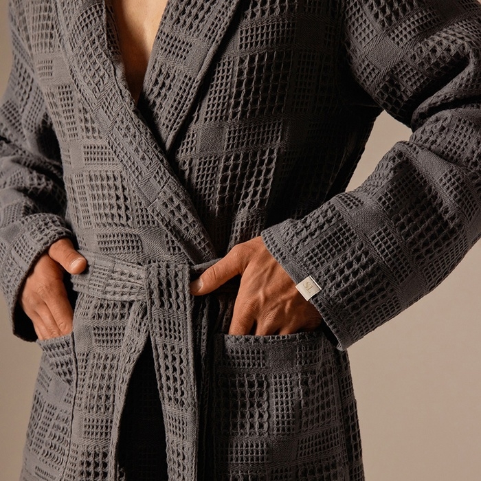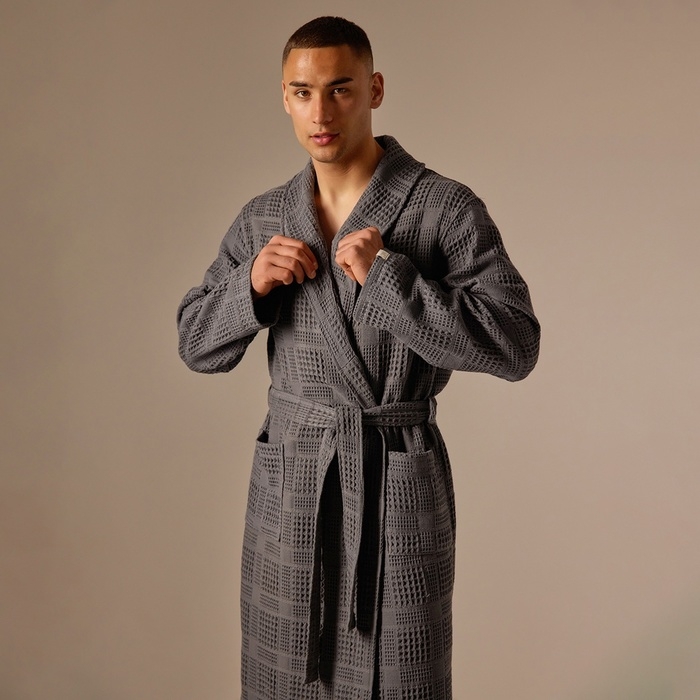 Халат вафельный мужской SL HOME: Chess "Гри Сандре", размер L, 100% хлопок, 340 г/м2