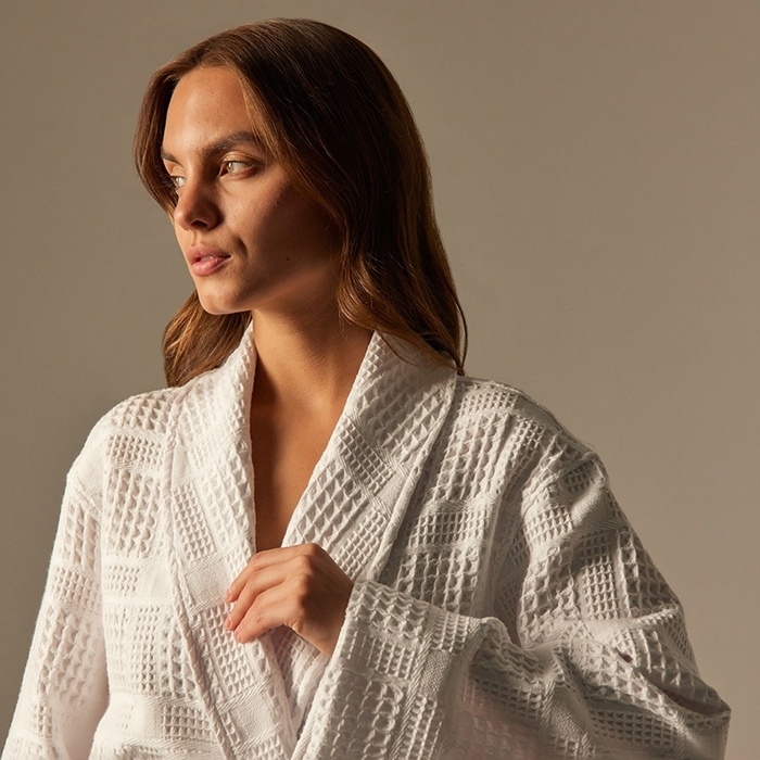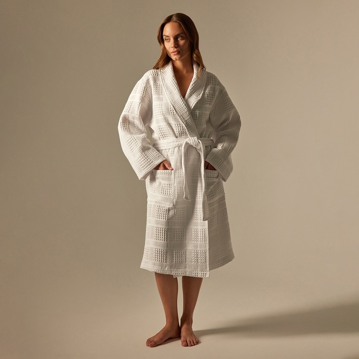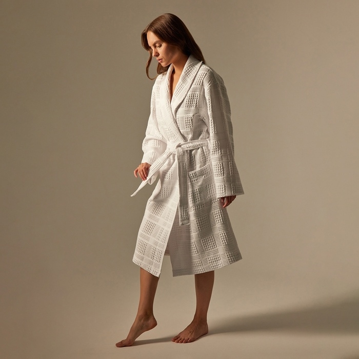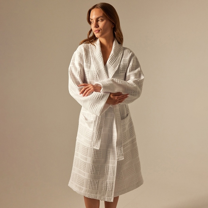 Халат вафельный женский SL HOME: Chess "Блан де Блан", размер S, 100% хлопок, 340 г/м2