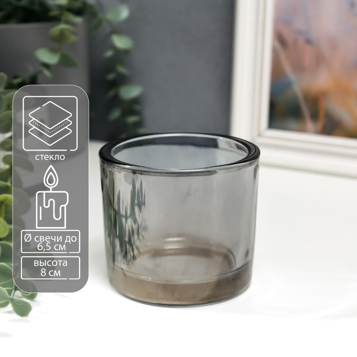 Подсвечник стекло на 1 свечу "Стакан" прозрачный графит 8х9,3х9,3 см