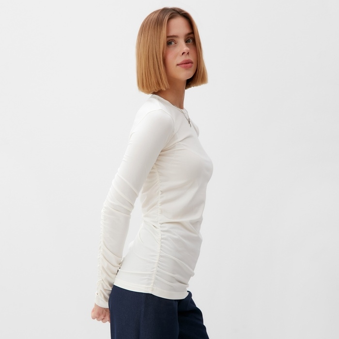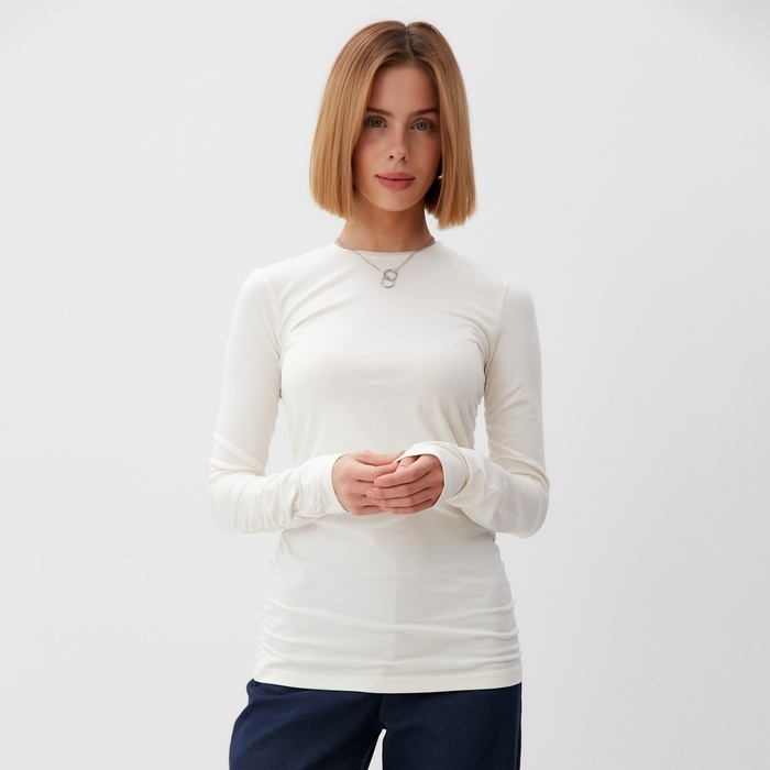Лонгслив женский со сборкой MINAKU: Casual Collection цвет экрю, р-р 48