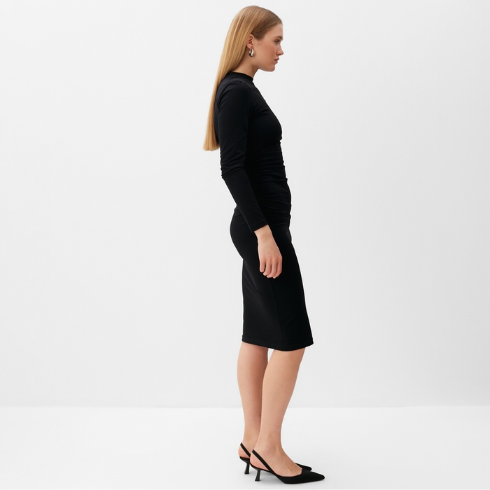 Платье женское со сборкой MINAKU: Casual Collection цвет черный ,р-р 46