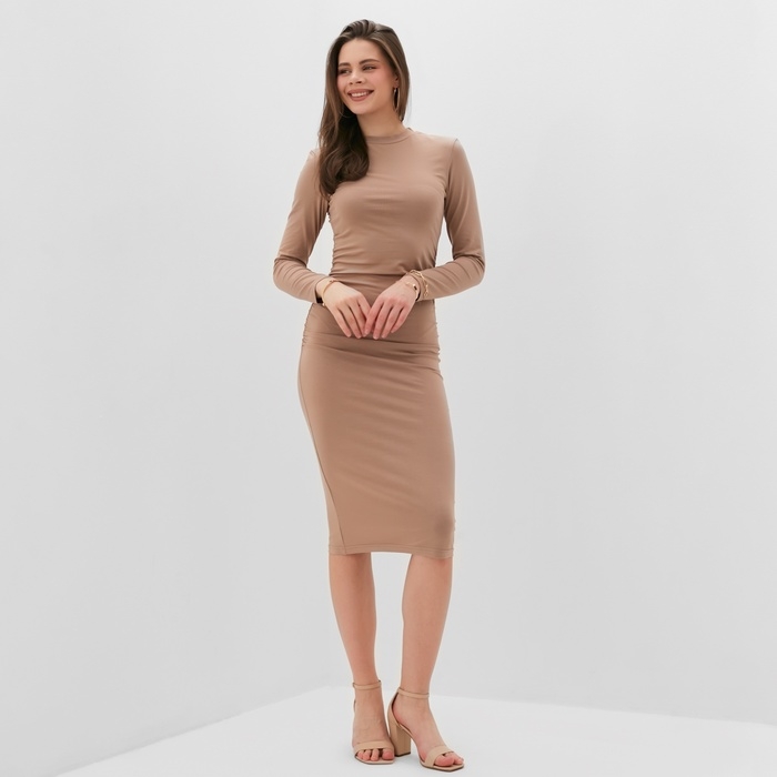 Платье женское со сборкой MINAKU: Casual Collection цвет тауп ,р-р 48