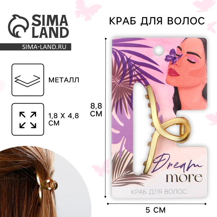 Краб для волос металлический Dream more , 4.8 х 1.8 см