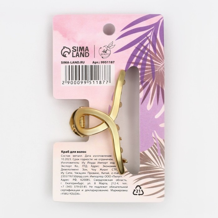Краб для волос "Эдисон" изгиб, 4,5 см, золото