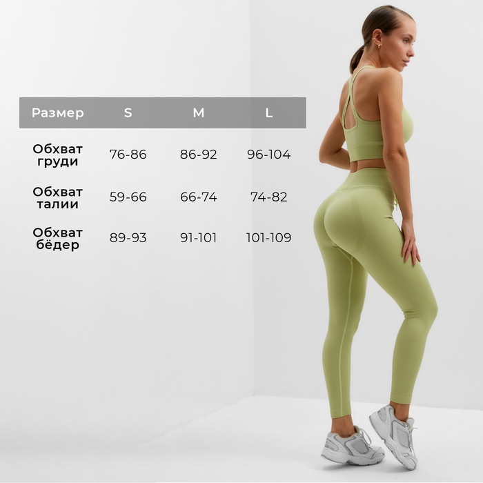 Брюки (леггинсы) спортивные женские с фактурной резинкой MINAKU цвет светло-зеленый, р-р 44