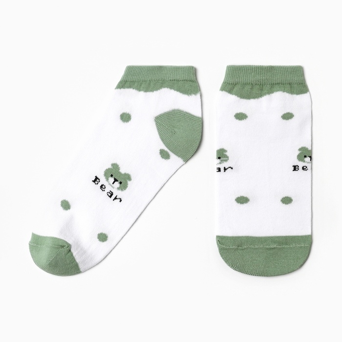 Носки женские укороченные "Медвежата", цвет белый/оливковый, р-р 23-25