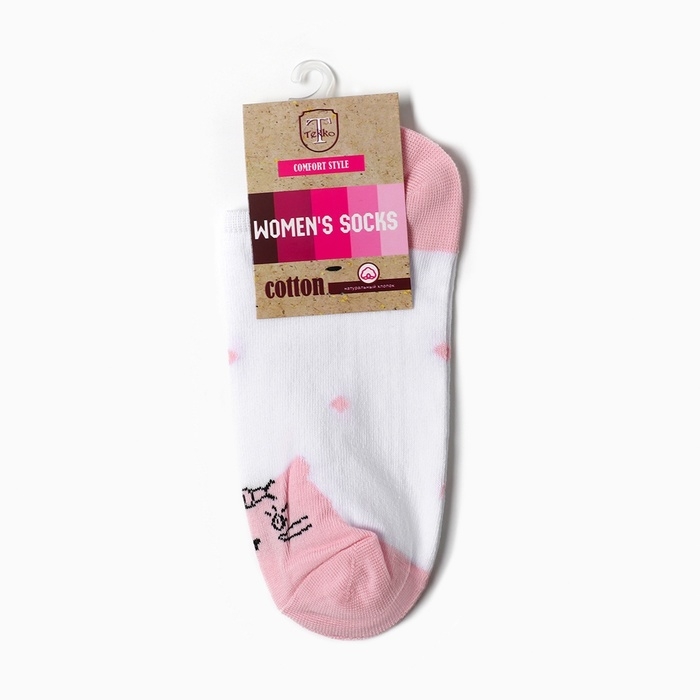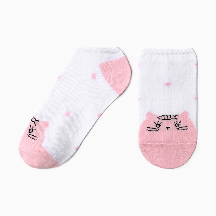 Носки женские укороченные "Котик", цвет белый/розовый, р-р 23-25