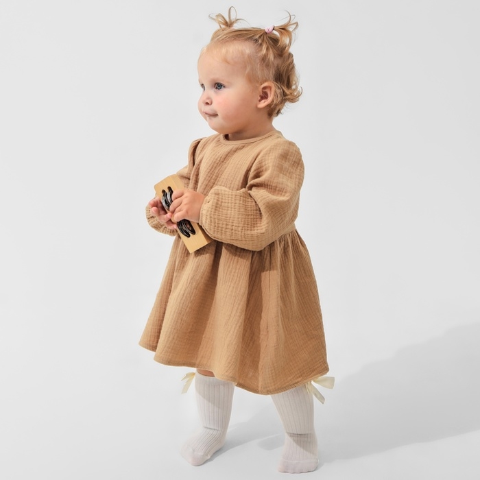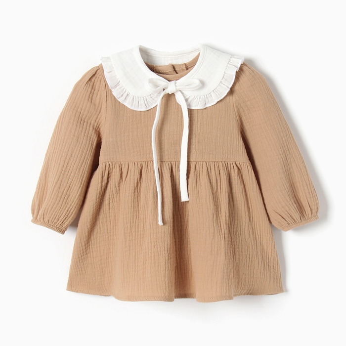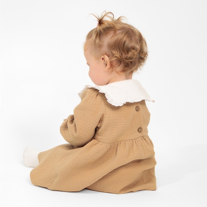 Платье с воротничком Крошка Я Муслин, 92-98, бежевый