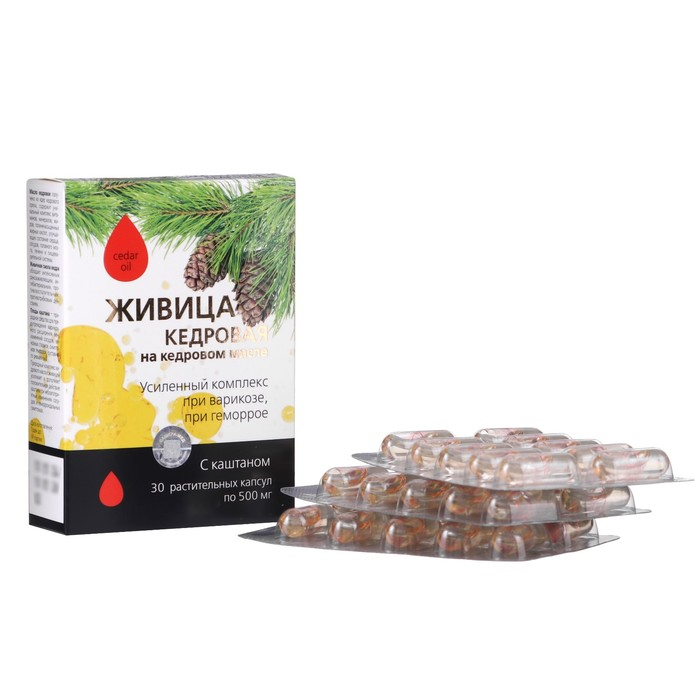 Живица кедровая на кедровом масле с каштаном, при варикозе и геморрое, 30 капсул по 0,5 г