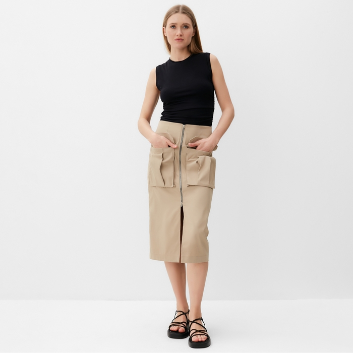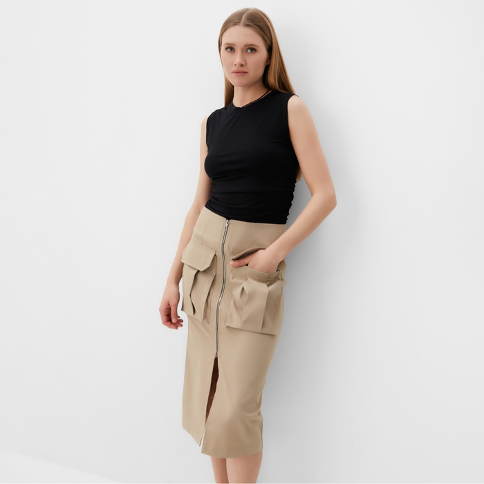 Юбка женская на молнии MINAKU: Safari цвет бежевый, р-р 42