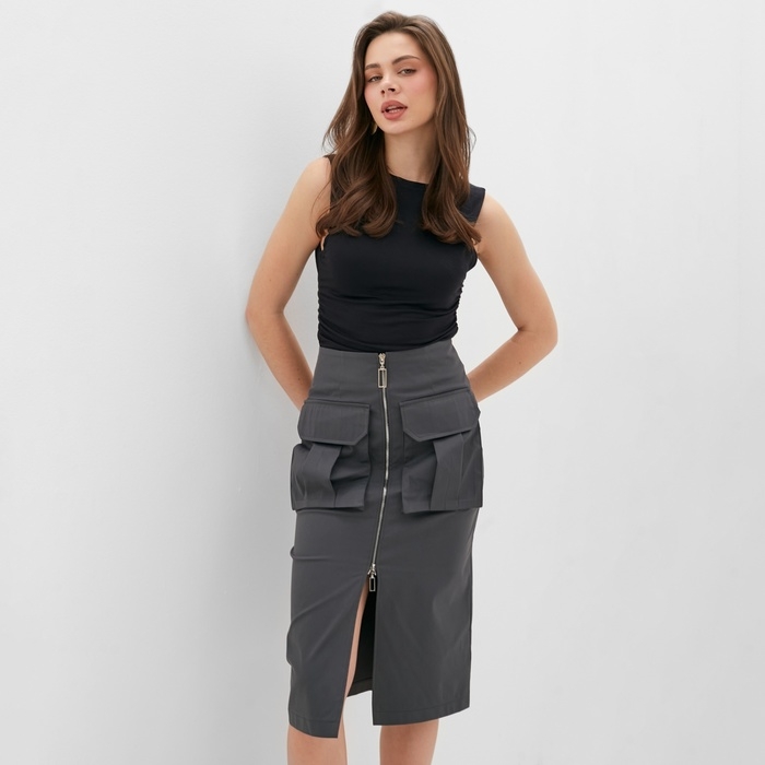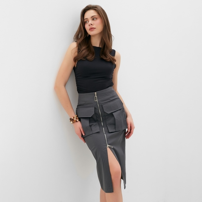 Юбка женская на молнии MINAKU: Safari цвет графит, р-р 44