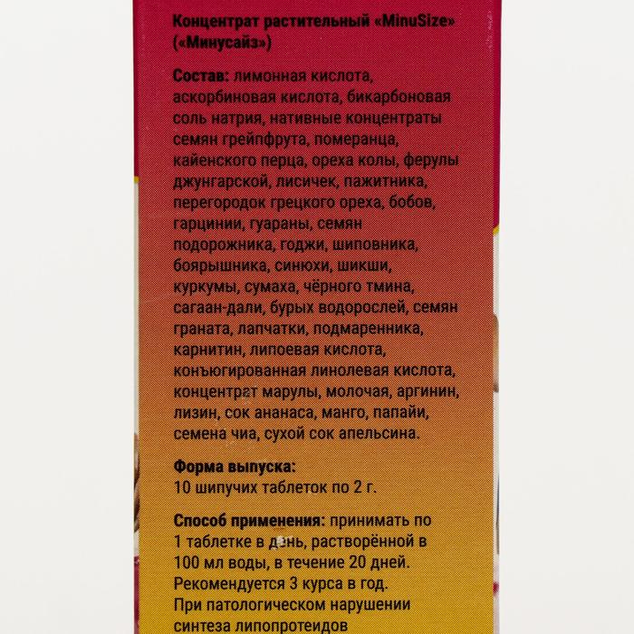 Таблетки шипучие Minusize, для похудения, 10 шт.
