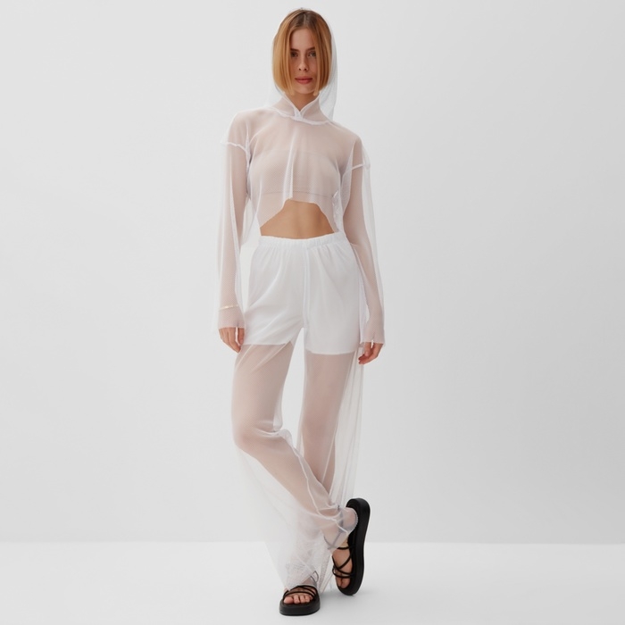 Комплект женский (лонгслив с капюшоном, брюки) MINAKU: Casual Collection цвет белый, р-р 42