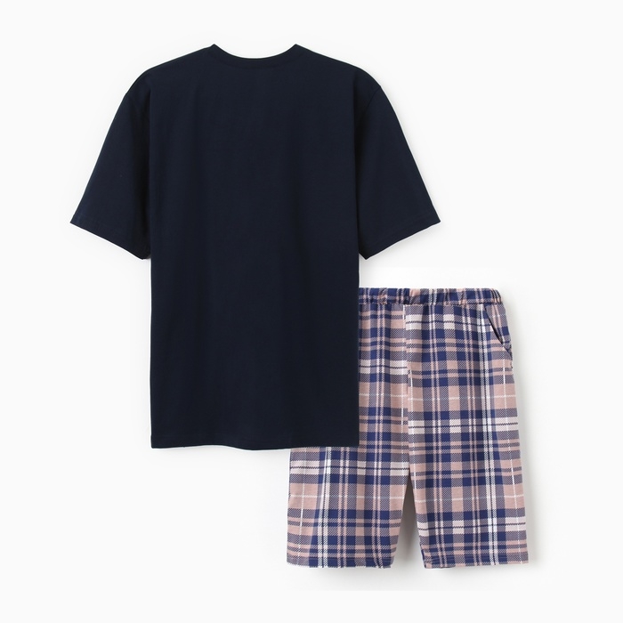 Пижама мужская (футболка/шорты), цвет синий/клетка, размер 54