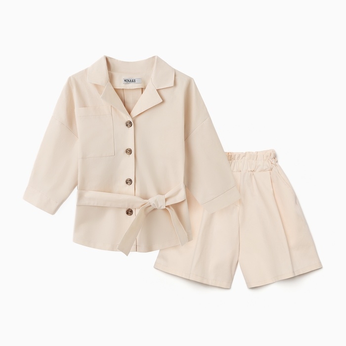 Костюм для девочки (Рубашка и шорты) MINAKU, цвет молочный, рост 158 см