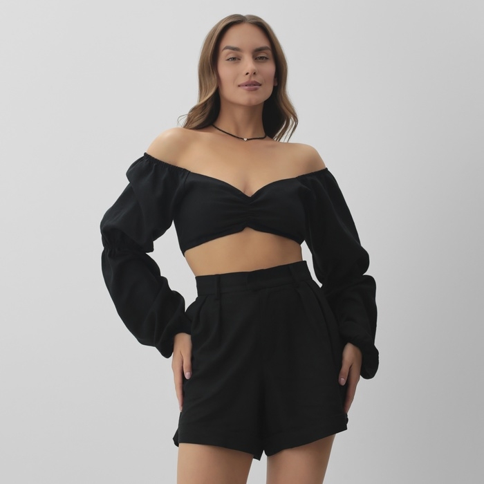 Кроп-топ с длинными рукавами MIST, цв. черный, р-р M